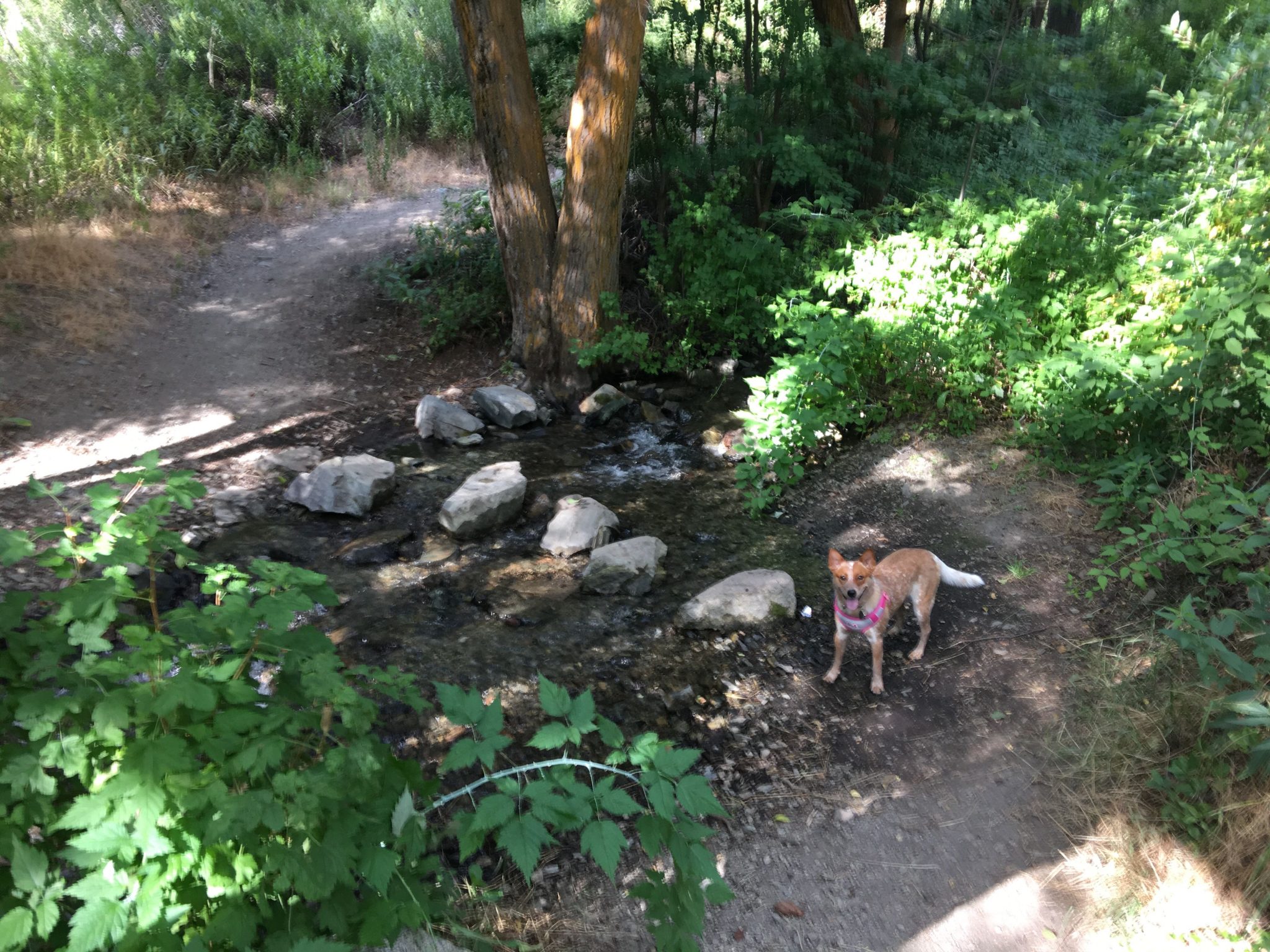 村はほぼ見終わったので、Genoa Bar and Saloonから南へすぐのCarson Streetを山側へ行くと道の終わりにGenoa Canyon Trailheadがあり、ここから里山ハイキングへ。村の北端へつながるGenoa Loop Trailは全長約8.2マイル(約13km) もあるので、行けるとこまで行って、出来れば1時間半くらいで見られる滝を見てから引き返そうというプランで歩き始めました。10分程で小さな滝というか渓流を見て涼んだ後、さらに山道をすすんでいくほどにスイッチバック度が増し、そして道幅が狭い上に片側切り落としで心臓バクバク。軽い気持ちの里山散歩には向かなかったなーと30分でUターンしました。ジュノアとカーソンバレーが見渡せるくらいには登ったのでとりあえずよし!としました。次回は装備と気持ちを万端にして先にある本命滝を拝みに行きたいものです。尚、Trailheadには4~5台のスペースの駐車場(無料)がありました。