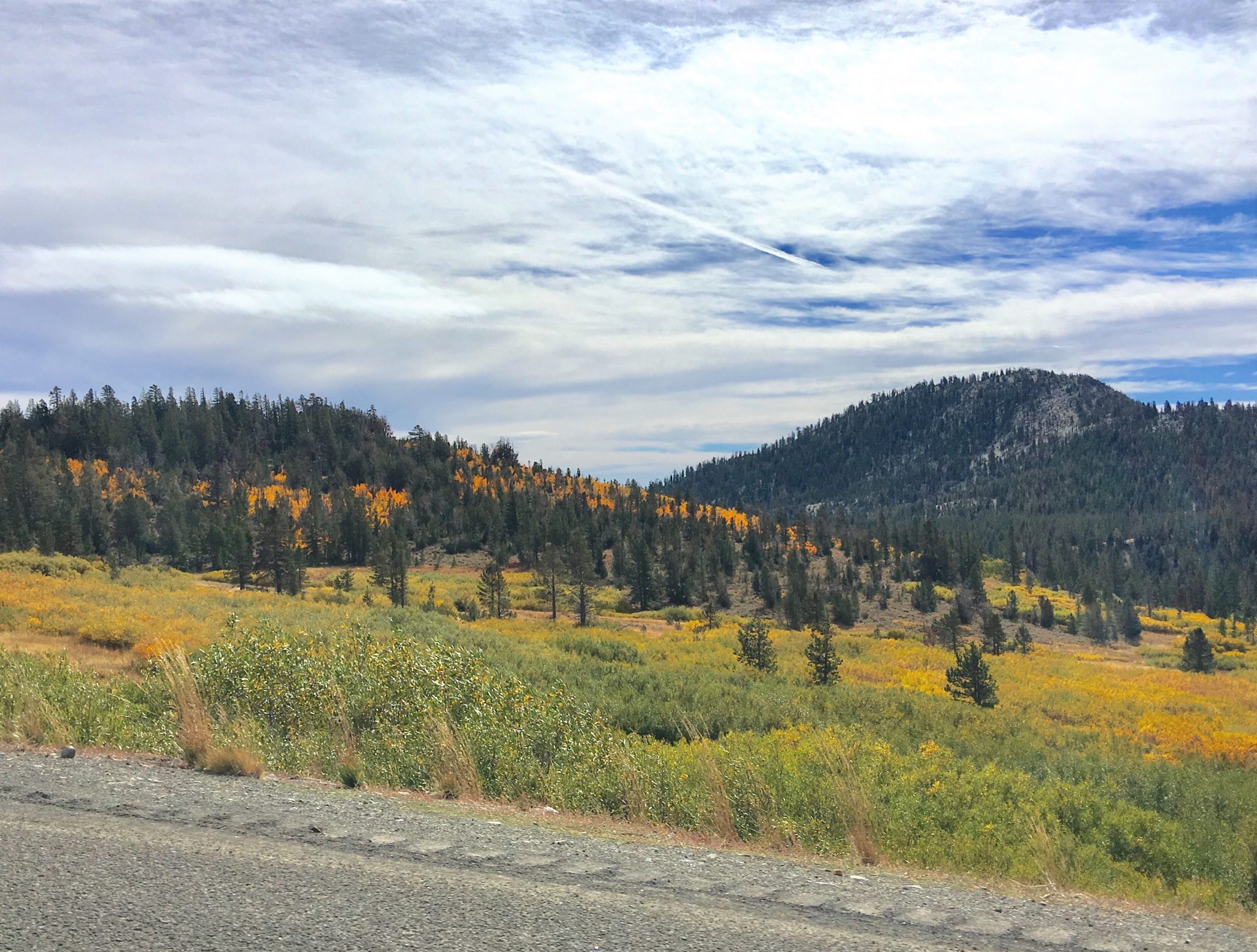 Mt.Rose Hwyを黄葉ドライブしながらホテルへ。(10月上旬撮影)。山越えをするとリノよりも幾分気温が低くなるのでシャキっと澄み切った空気を感じられます。