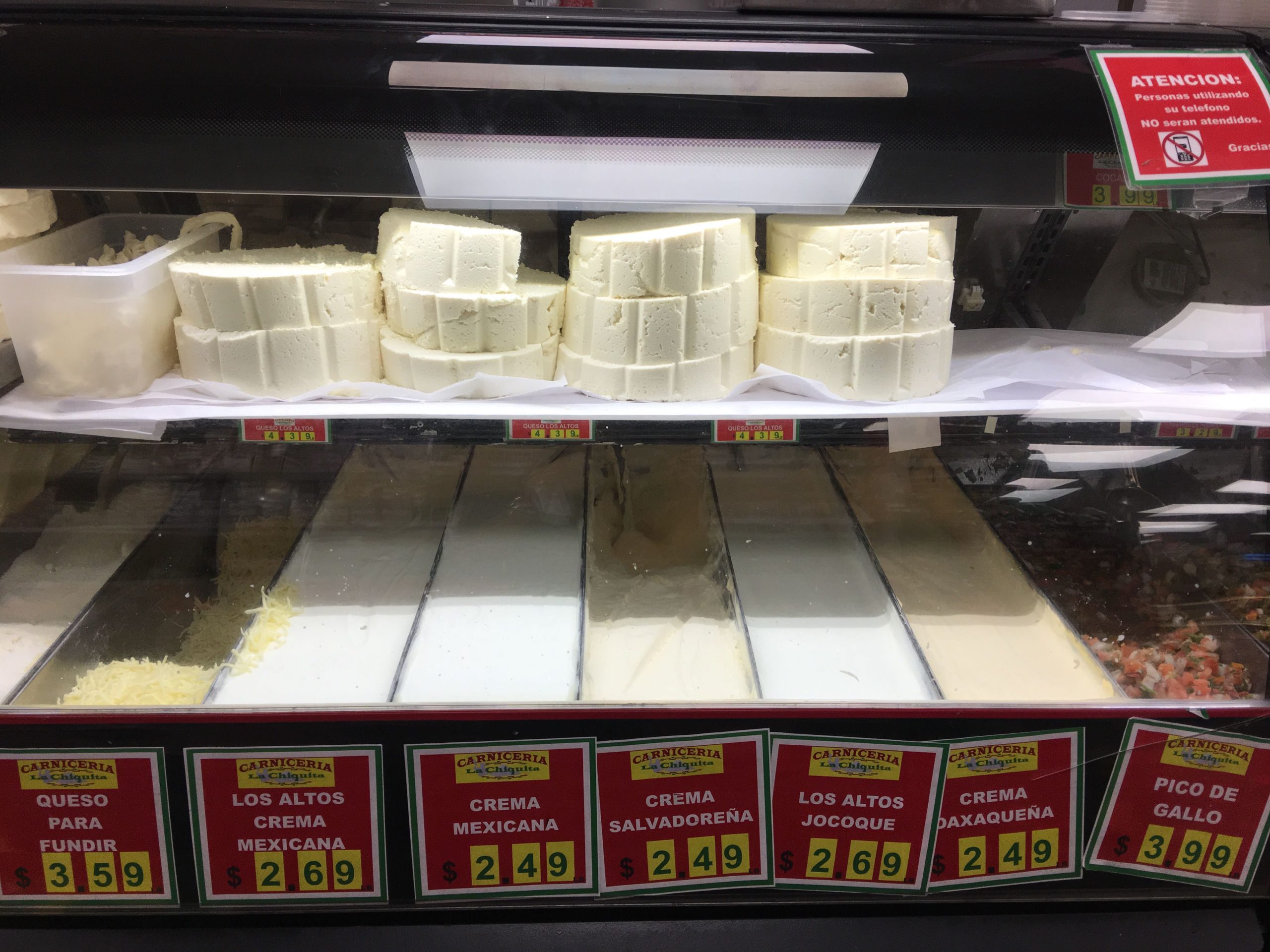 サンドイッチの他にはタコス、鶏手羽先、豚のグリル焼き、Chicharron チチャロンと呼ばれる豚の皮の唐揚げ等のお惣菜、サルサやCremaというクリームディップ、各種Queso メキシカン・チーズもここで量り売りしてます。