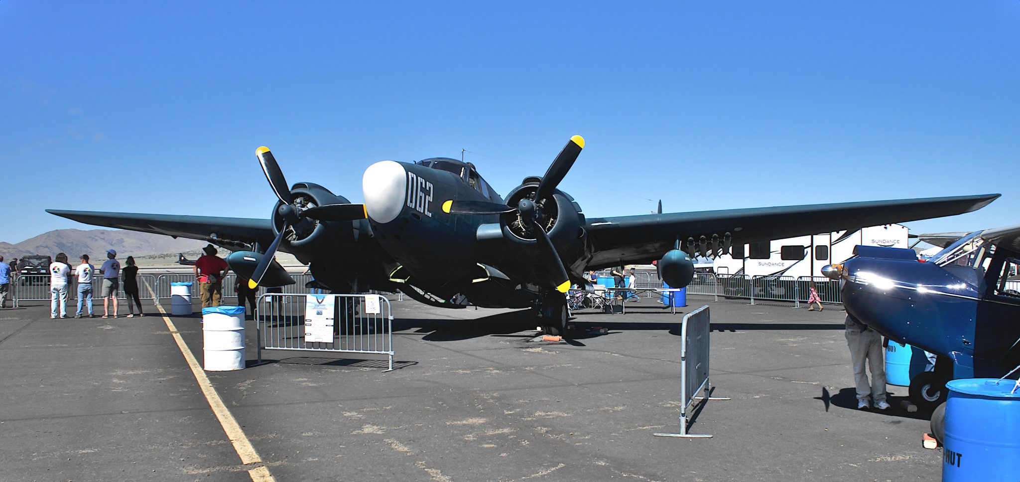 2016年の目玉は米海軍のブルー・エンジェルスの演目、2017年はテキサス・フライング・レジェンズ・ミュージアムのB-25ミッチェル爆撃機とその他戦闘機の編隊飛行の演目と海兵隊のAV-8B ハリアーの演目があり、日本人としてここリノでみる日本機のホンダ・ジェットのデモフライトに深い感銘を覚えました!