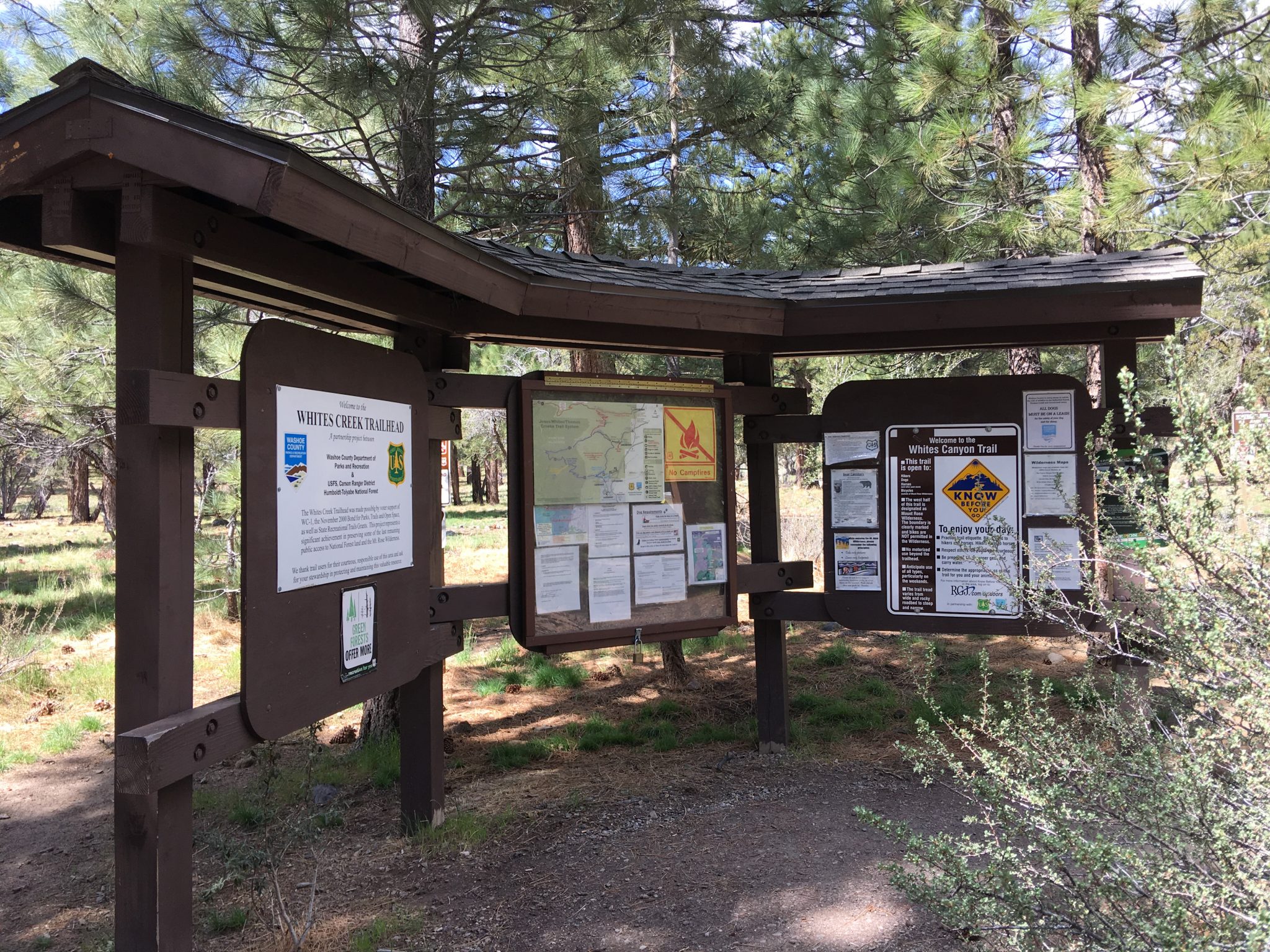 White Creek Trailhead 駐車場 (※) からスタート。駐車場脇にはぼっとんトイレがあります。