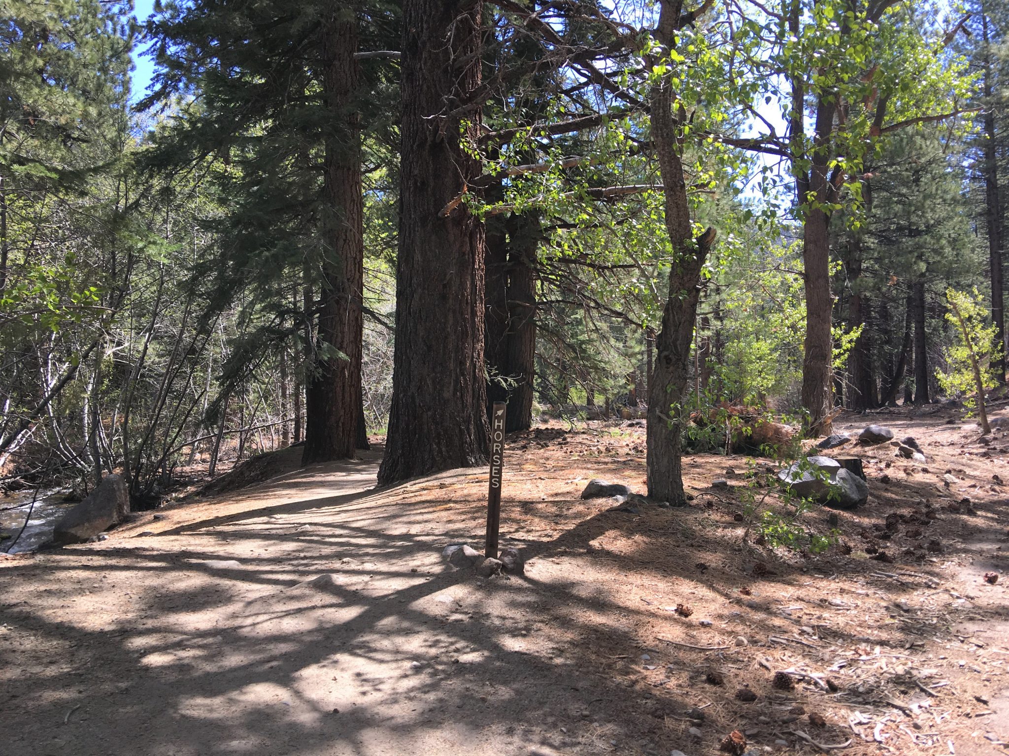 このTrailはビジターセンターのあるメインエントランスのエリアとは離れていて、Mt.Rose Hwy (州道431号線) をMt.Roseへ向かいメインエントランスよりも手前、2車線が1車線になる直前の角、Timberline Rd.を右へ入り数分で左に見える上写真の看板のところを左へ入ったWhite Creek Trailheadからのアクセスが最寄りとなります。